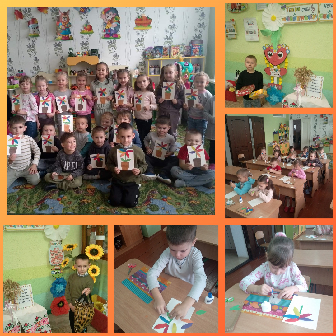 - Виховання у дошкільнят любові до України, шанобливого ставлення до родини, поваги до народних традицій і звичаїв, державної та рідної мови, праці, національних цінностей. Свідомого ставлення до себе, оточення та довкілля.