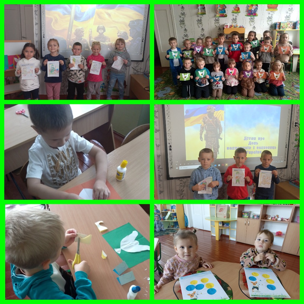 Діти старших груп переглянули презентації, створювали вітальні листівки для захисників, вивчали вірші та пісні.