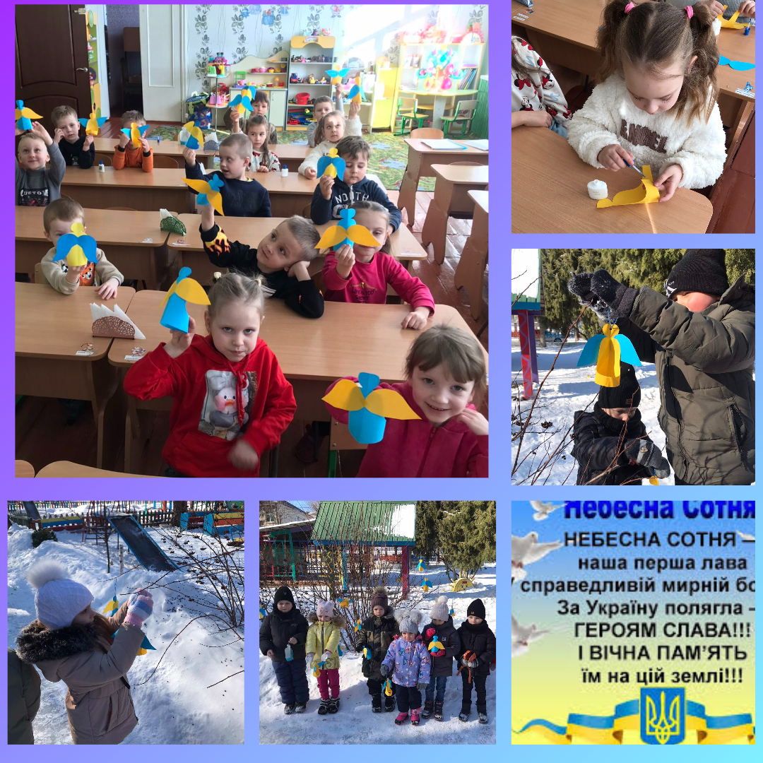 У старшій групі "Струмочок" проведено заняття до Дня Героїв Небесної Сотні " Герої не вмирають". Діти вшанували хвилиною мовчання тих, хто ціною власного життя виборював право жити без страху у своїй країні. З вдячністю та глибокою повагою за те, що Герої Небесної Сотні, - люди різного віку, різних професій, з різних куточків України об'єднались, щоб зберегти гідність, свободу, незалежність, вихованці долучились до Акції "Янголи Пам'яті". Діти виготовили ангелочків, які символізують душі загиблих на Майдані і прикріпили їх на Дереві Пам'яті.